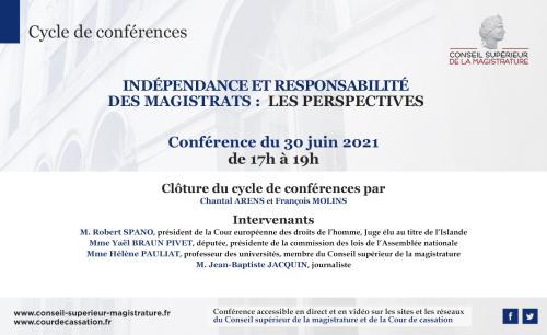 CONFERENCE DU 30 JUIN 2021 : INDEPENDANCE ET RESPONSABILITE DES MAGISTRATS : LES PERSPECTIVES