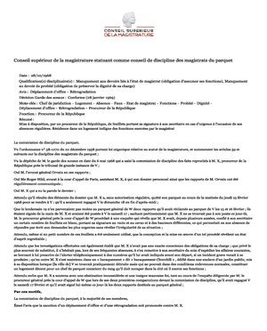 Parquet Avis n° P004 - 28/10/1968 Déplacement d'office Lire la décision Sanction Déplacement d'office Manquements Dignité Fonction Procureur de la république