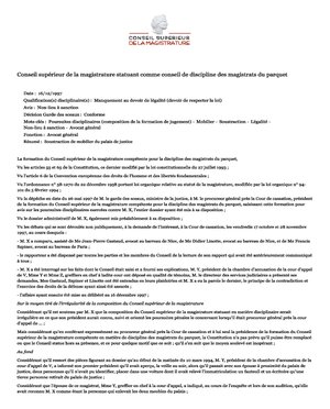 Parquet Avis n° P033 - 16/12/1997 Non lieu à sanction Lire la décision Sanction Non lieu à sanction Fonction Avocat général près une cour d'appel