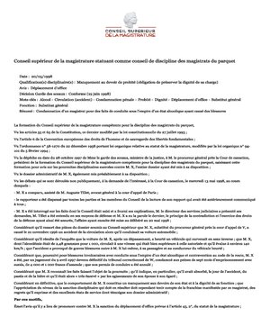 Parquet Avis n° P034 - 20/05/1998 Déplacement d'office Lire la décision Sanction Déplacement d'office Manquements Dignité Fonction Substitut général