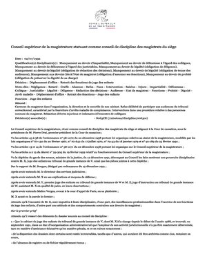 Le Conseil supérieur de la magistrature, réuni comme conseil de discipline des magistrats du siège et siégeant à la Cour de cassation, sous la présidence de M. Pierre Drai, premier président de la Cour de cassation ;