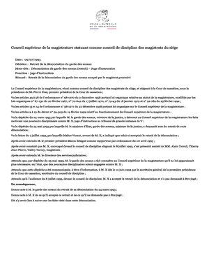 Retrait de la dénonciation du garde des sceaux accepté par le magistrat poursuivi