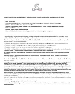 Siège Décision n° S103 - 02/04/1999 Abaissement d'un ou de plusieurs échelons Lire la décision Sanction Abaissement d'un ou de plusieurs échelons Manquements Dignité Fonction Juge