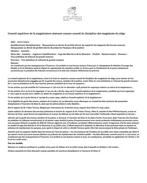 Ne constituent pas des manquements à l’honneur, à la probité ou aux bonnes mœurs, d’une part, le changement de décision d’un juge des libertés et de la détention après le départ du représentant du ministère public et, d’autre part, le doublement de la peine initialement prononcée par le président du tribunal correctionnel à la suite des critiques véhémentes du prévenu