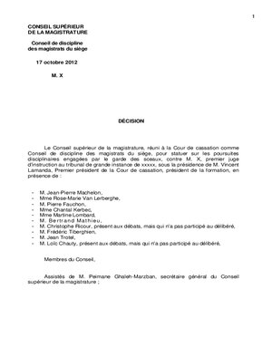 Siège Décision n° S203 - 17/10/2012 Lire la décision Fonction Vice-président chargé de l'instruction Décisions associées Décision n° S159 - 20/11/2007