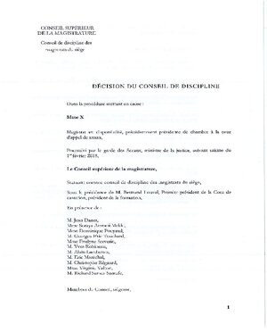 Le comportement par lequel un magistrat adopte, à l’égard des fonctionnaires du greffe, une attitude autoritaire, fermée et méprisante caractérisée par des gestes de colère, la formulation de façon individuelle ou collective de reproches non justifiés, dans les bureaux et en audience publique, caractérise un manquement au devoir de délicatesse. Le comportement méprisant et arrogant adopté par un magistrat à l’égard de ses collègues de travail ainsi que les comportements inappropriés à leur égard se manifestant par des gestes et mimiques méprisants, dévalorisants, vexatoires, un dénigrement devant témoin ou en audience publique, des accusations de parti pris délibéré, de malhonnêteté intellectuelle ou de mise en scène, un refus de dialogue et une invocation inappropriée de la qualité de président de chambre, sont constitutifs d’un manquement au devoir de délicatesse à l’égard de ses collègues magistrats. Un tel comportement adopté en audience publique, devant les justiciables et avocats, porte atteinte à l’image de la justice. La formulation adoptée par un magistrat trahissant le secret du délibéré en manifestant son opinion personnelle sur la décision rendue constitue un manquement au devoir de loyauté vis-à-vis de ses collègues composant la formation collégiale et un manquement au devoir de fidélité au serment imposant le respect du secret des délibérations.