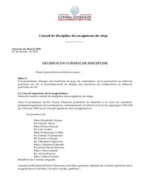 Le Conseil supérieur de la magistrature a renvoyé la magistrate des fins de la poursuite disciplinaire, considérant que le manquement à la légalité n’était pas caractérisé en l’absence d’une décision définitive constatant une violation grave et délibérée d’une règle de procédure exigée par l’article 43 de l’ordonnance statutaire. S’agissant du devoir de respect et d’attention à autrui, le Conseil a relevé que si, dans le cas d’espèce, l’absence d’audition des parties civiles était de nature à constituer un manquement, elle ne revêtait pas le caractère d’une faute disciplinaire au regard de l’ensemble des contraintes structurelles, conjoncturelles et personnelles rencontrées par la magistrate dans l’exercice de son activité.