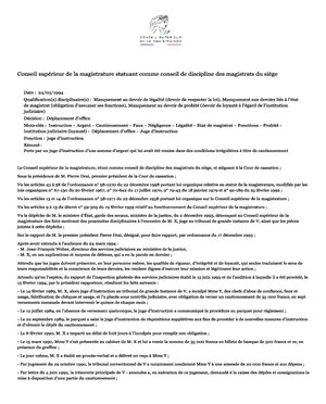 Siège Décision n° S076 - 24/03/1994 Déplacement d'office Lire la décision Sanction Déplacement d'office Manquements Loyauté Fonction Juge d'instruction