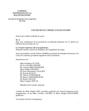 M. X n’a pas rejoint son poste, du 2 novembre au 30 novembre et du 15 décembre au 31 décembre 2020. Il a fait valoir qu’en raison de l’état de santé de son conjoint, il lui était nécessaire de rester à ses côtés. Il a indiqué que dans sa situation, l’administration était dans l’obligation de lui accorder sa demande de disponibilité et qu’il était en conséquence dans son « bon droit ». Cependant, même en raison de sa situation personnelle délicate, il ne devait pas s’absenter du tribunal sans autorisation ni de sa propre initiative. En conséquence, il lui appartenait de prendre toutes les mesures utiles pour retourner au tribunal de proximité comme il s’y était engagé et de poursuivre son activité professionnelle jusqu’au décret le plaçant en position de disponibilité. Par ailleurs, ces absences ont eu un fort retentissement au sein des tribunaux de proximité du ressort puisqu’iI n’a pas tenu les audiences qui lui étaient attribuées et qu’il y a dû y avoir un réaménagement des audiences pour éviter des suppressions d’audiences. Si M. X a décidé de rejoindre son poste du 2 au 14 décembre, sa présence a eu pour principal objet de rédiger les jugements des deux dernières audiences qu’il avait tenues avant son départ et de rendre des décisions. Il n’a en effet ni présidé de nouvelles audiences ni ne s’est rendu disponible pour le tribunal de proximité. Ces absences non autorisées sont constitutives d’un manquement aux devoirs de l’état de magistrat et non d’un abandon de poste dont les éléments constitutifs ne sont pas réunis. Le comportement de M.X à l’égard de la présidente du tribunal judiciaire, de la coordinatrice du tribunal de proximité et de ses magistrats et collaborateurs directs, auxquels il a imposé unilatéralement sa décision de ne pas revenir au tribunal ne constitue pas un manquement au devoir de loyauté mais une atteinte à la délicatesse, constitutive des devoirs de l’état de magistrat. Son absence d’implication dans le fonctionnement du tribunal, son incapacité à assurer son service constituent un manquement à la rigueur professionnelle qui participe également aux devoirs de l’état de magistrat. Ces absences ont eu des conséquences d’une particulière gravité au sein du tribunal (audience de décembre 2020 intégralement renvoyée et l’ensemble des dossiers de l’audience du 23.09.20 présidée par le magistrat ont fait l’objet d’une prorogation). Il en ressort que M. X a manqué à son devoir de dignité et qu’il a porté atteinte à l’image de la justice.