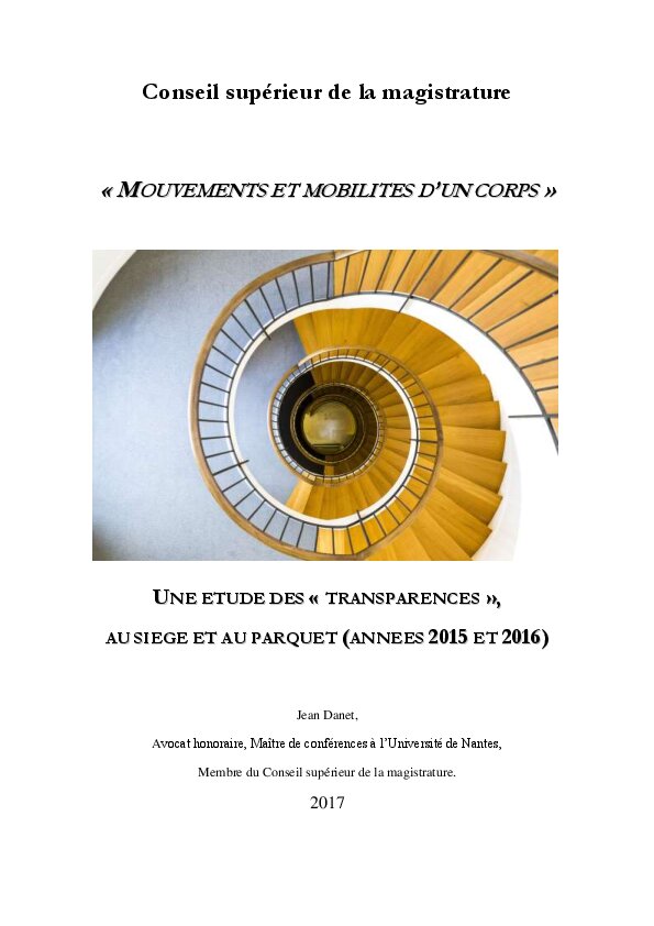 « Mouvements et mobilités d’un corps » Une étude des « transparences », au siège et au parquet (années 2015 et 2016). Par Jean Danet