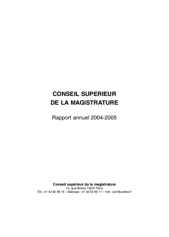 Le rapport couvre la période du 1er novembre 2004 au 31 décembre 2005.Outre les principaux aspects de l’exercice des attributions du Conseil en matière de nomination et de discipline, le rapport présente une étude sur les Conseils de la Justice en Europe, ainsi que des propositions pour une réforme du Conseil supérieur de la magistrature.